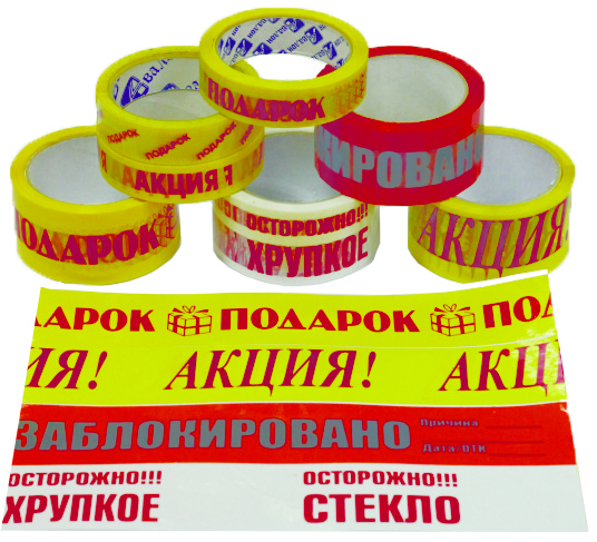 Изображение наносится на рулоны клейких лен, с использованием 3-х цветов печати + цвет фона клейкой ленты. Базовые цвета основы: белый, прозрачный, коричневый. Дополнительные цветные основы: красная, синяя, оранжевая, зеленая, желтая. Срок производства 10-14 дней. Изготавливаем различных размеров: ширина (15, 25, 30, 50, 75, 100, 150 мм), длина намотки (66, 132, 495, 660, 990 м).